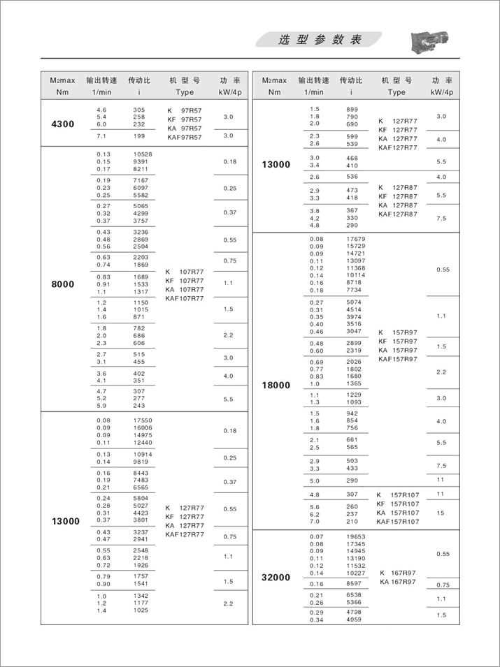 下一篇:K螺旋錐齒輪減速機(jī)選型參數(shù)扭矩(200N.m-4300N.m)