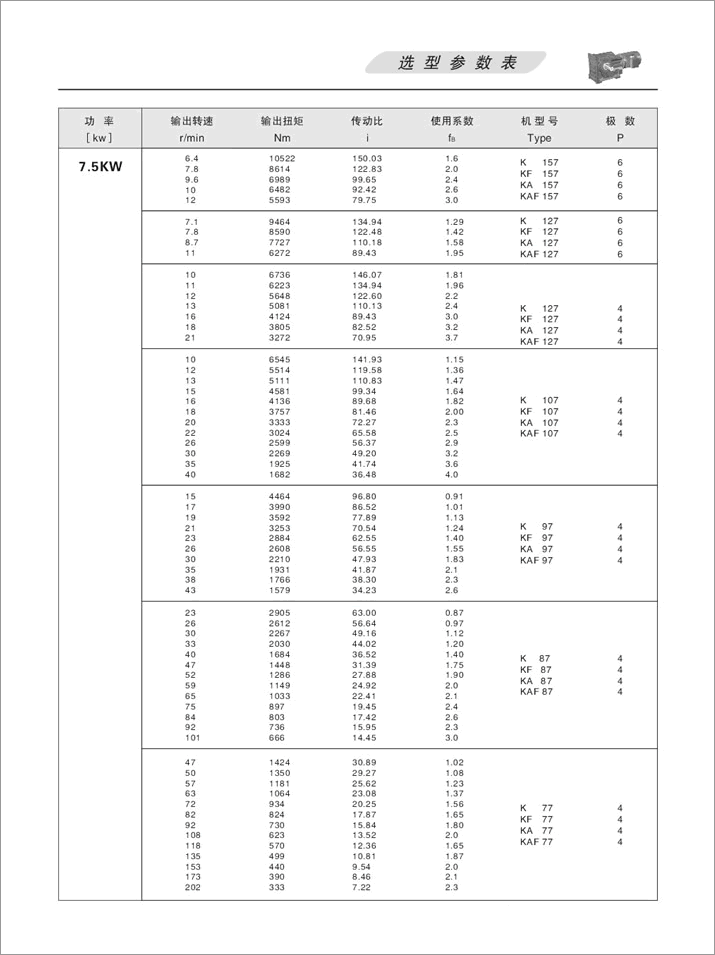 上一篇:K螺旋錐齒輪減速機(jī)選項(xiàng)參數(shù)表11KW、15KW